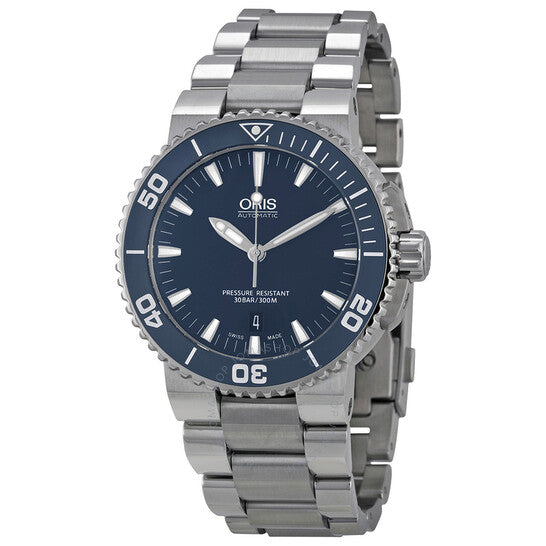 علبة من الفولاذ المقاوم للصدأ مع سوار من الفولاذ المقاوم للصدأ. إطار دوار أحادي الاتجاه من الفولاذ المقاوم للصدأ مع حلقة علوية من السيراميك الأزرق. ميناء أزرق مع عقارب وعلامات ساعات فضية مضيئة. علامات دقائق حول الحافة الخارجية. نوع الميناء: تناظري. عقارب وعلامات مضيئة. عرض التاريخ عند موضع الساعة 6. حركة أوتوماتيكية مع احتياطي طاقة لمدة 38 ساعة. زجاج من الياقوت المقاوم للخدش. تاج لولبي. ظهر هيكل عظمي. قطر العلبة: 43 مم. سمكها: 13.5 مم. شكلها دائري. عرض السوار: 20 مم. طول السوار: 8.5 بوصة. مشبك قابل للطي. مقاومة للماء حتى عمق 300 متر / 1000 قدم. الوظائف: التاريخ، الساعة، الدقائق، الثواني. تصميم كاجوال. علامة الساعة: صناعة سويسرية. ساعة أوريس أكويس للرجال بمينا أزرق 733-7653-4155MB.