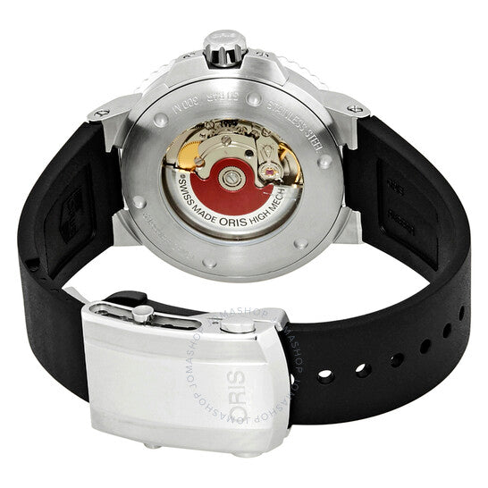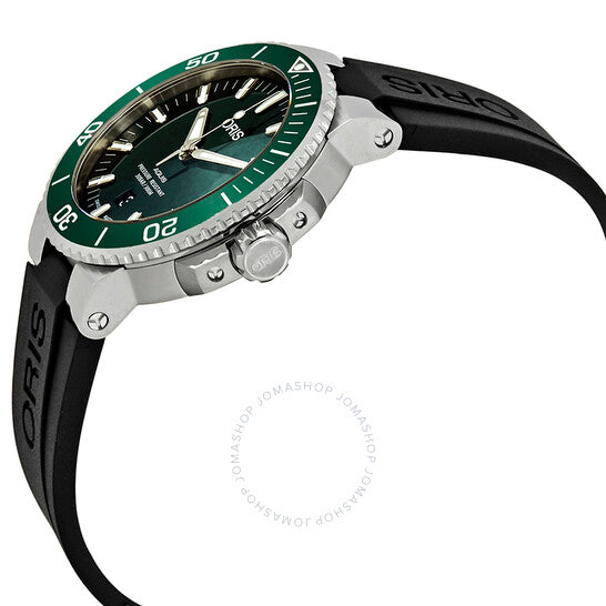 علبة من الفولاذ المقاوم للصدأ مع سوار مطاطي أسود. إطار دوار أحادي الاتجاه من الفولاذ المقاوم للصدأ بحافة معدنية دائرية مع حلقة علوية من السيراميك الأخضر. ميناء أخضر مع عقارب وعلامات ساعات فضية مضيئة. علامات دقائق حول الحافة الخارجية. نوع الميناء: تناظري. عقارب وعلامات مضيئة. عرض التاريخ عند موضع الساعة السادسة. حركة أوريس أوتوماتيكية عيار 733، مبنية على سيليتا SW200-1، تحتوي على 26 جوهرة، تنبض بمعدل 28800 ذبذبة في الساعة، ولديها احتياطي طاقة لمدة 38 ساعة تقريبًا. زجاج ياقوت مقاوم للخدش. تاج لولبي. غطاء خلفي شفاف. شكل دائري. حجم العلبة: 43.50 مم. سمك العلبة: 12.6 مم. عرض السوار: 24 مم. مشبك قابل للطي. مقاومة للماء حتى عمق 300 متر / 1000 قدم. الوظائف: التاريخ، الساعة، الدقائق، الثواني. سلسلة Aquis Date. طراز ساعة الغوص. ملصق الساعة: صناعة سويسرية. ساعة أوريس أكويس ديت أوتوماتيكية للرجال بمينا أخضر 01 733 7730 4157-07 4 24 64EB.