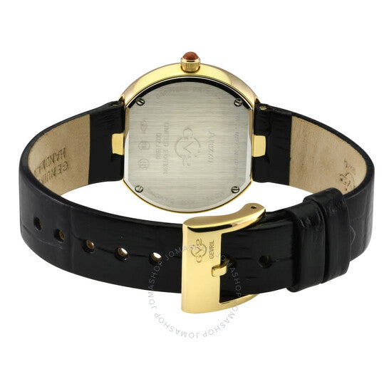علبة من الفولاذ المقاوم للصدأ بلون الذهب الأصفر مع سوار جلدي أسود. إطار ثابت من الفولاذ المقاوم للصدأ بلون الذهب الأصفر. ميناء أحمر بعقارب ذهبية اللون وعلامات ساعات مرصعة بالألماس. علامات دقائق حول الحافة الخارجية. نوع الميناء: تناظري. حركة كوارتز. زجاج ياقوت مقاوم للخدش. تاج قابل للسحب/الدفع. غطاء خلفي صلب. شكل دائري، مقاس العلبة: 33 مم، سمكها: 8.5 مم. عرض السوار: 16 مم. مشبك بإبزيم. مقاومة للماء حتى عمق 50 مترًا / 165 قدمًا. الوظائف: الساعات، الدقائق، الثواني. معلومات إضافية: 12 ماسة، مادة الميناء: كاباشون اليشب الأحمر، والتاج. سلسلة أريزو. ساعة أنيقة. GV2 من جيفريل أريزو كوارتز نسائية بمينا أحمر مرصعة بالألماس، 13303.