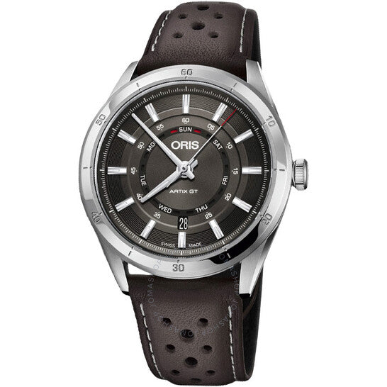 علبة فضية اللون من الفولاذ المقاوم للصدأ مع سوار بني من جلد العجل. إطار ثابت فضي اللون من الفولاذ المقاوم للصدأ. ميناء رمادي مع عقارب وعلامات ساعات فضية اللون. علامات دقائق حول الحافة الخارجية. نوع الميناء: تناظري. عقارب وعلامات مضيئة. عرض التاريخ عند موضع الساعة السادسة. حركة أوريس كاليبر 735 أوتوماتيكية، مبنية على سيليتا SW220-1، تحتوي على 26 جوهرة، تنبض بمعدل 28800 ذبذبة في الساعة، ولديها احتياطي طاقة يدوم حوالي 38 ساعة. زجاج ياقوت مقاوم للخدش ومضاد للانعكاس. تاج لولبي. غطاء خلفي شفاف. شكل العلبة دائري، مقاسها 42 مم. مشبك بزر ضغط قابل للطي. مقاومة للماء حتى عمق 100 متر / 330 قدمًا. الوظائف: التاريخ، اليوم، الساعة، الدقيقة، الثانية. سلسلة أرتيكس. تصميم كاجوال. علامة الساعة: صناعة سويسرية. ساعة أوريس أرتيكس أوتوماتيكية للرجال بمينا رمادي 01 735 7751 4153-07 5 21 09FC.