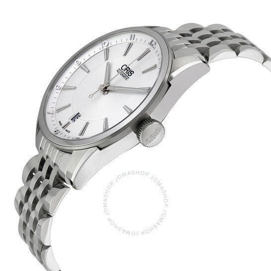 علبة من الفولاذ المقاوم للصدأ مع سوار من الفولاذ المقاوم للصدأ. إطار ثابت من الفولاذ المقاوم للصدأ. ميناء فضي اللون مع عقارب فضية اللون ومؤشرات ساعات رقمية عربية. مؤشرات دقائق حول الحافة الخارجية. نوع الميناء: تناظري. عقارب ومؤشرات مضيئة. عرض التاريخ عند موضع الساعة السادسة. حركة أوتوماتيكية. زجاج ياقوت مقاوم للخدش. تاج قابل للدفع والسحب. غطاء خلفي شفاف. قطر العلبة: 39 مم. سمكها: 12.5 مم. شكلها دائري. عرض السوار: 20 مم. قابلة للطي مع مشبك أمان. مقاومة للماء حتى عمق 100 متر / 330 قدمًا. الوظائف: التاريخ، الساعة، الدقائق، الثواني. طراز ساعة رسمية. علامة الساعة: صناعة سويسرية. ساعة أوريس أرتيكس أوتوماتيكية للرجال بمينا فضي من الفولاذ المقاوم للصدأ، 733-7713-4031MB.
