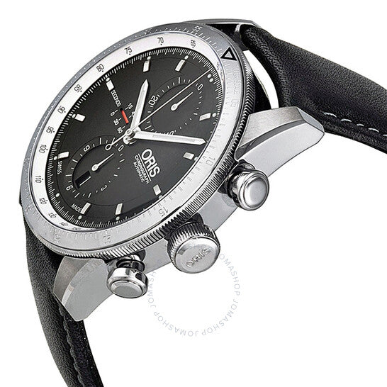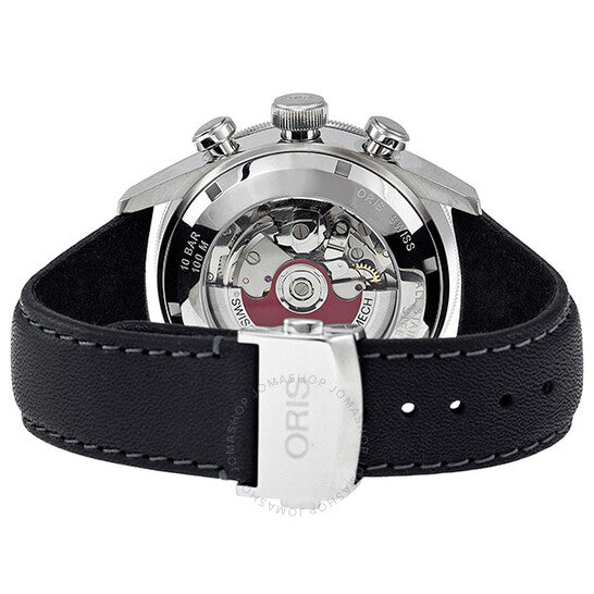 علبة من الفولاذ المقاوم للصدأ مع سوار جلدي أسود. إطار ثابت من الفولاذ المقاوم للصدأ مع مقياس سرعة الدوران. ميناء أسود بعقارب فضية اللون وعلامات ساعات لاصقة. علامات دقائق حول الحافة الخارجية. نوع الميناء: تناظري. عقارب وعلامات مضيئة. يظهر عرض التاريخ عند موضع الساعة السادسة. كرونوغراف - ثلاثة أقراص فرعية تعرض: ٦٠ ثانية، ٣٠ دقيقة، و١/١٠ من الثانية. حركة أوتوماتيكية. زجاج ياقوت مقاوم للخدش. تاج لولبي. ظهر هيكل هيكلي. قطر العلبة: ٤٤ مم. سمكها: ١٥.٢ مم. شكل دائري. مشبك قابل للطي بزر ضغط. مقاومة للماء حتى عمق ١٠٠ متر / ٣٣٠ قدمًا. الوظائف: كرونوغراف، تاريخ، ساعة، دقيقة، ثانية. طراز ساعة رياضية. علامة الساعة: صناعة سويسرية. ساعة أوريس أرتيكس كرونوغراف أوتوماتيكية للرجال بمينا سوداء، رقمها ٦٧٤-٧٦٦١-٤١٧٤LS.