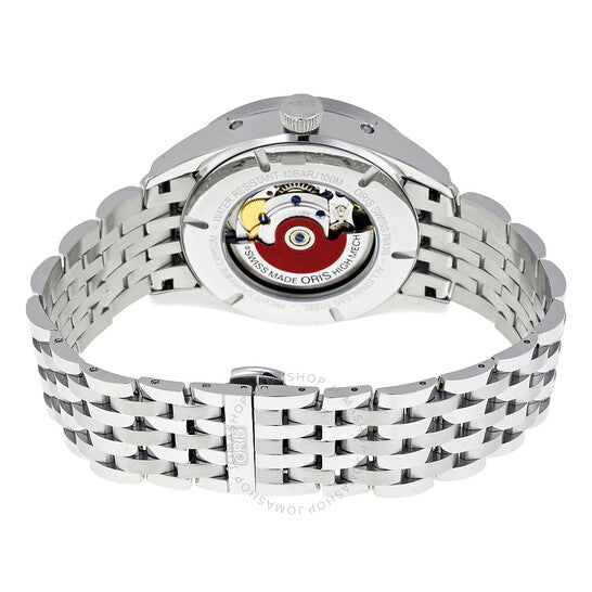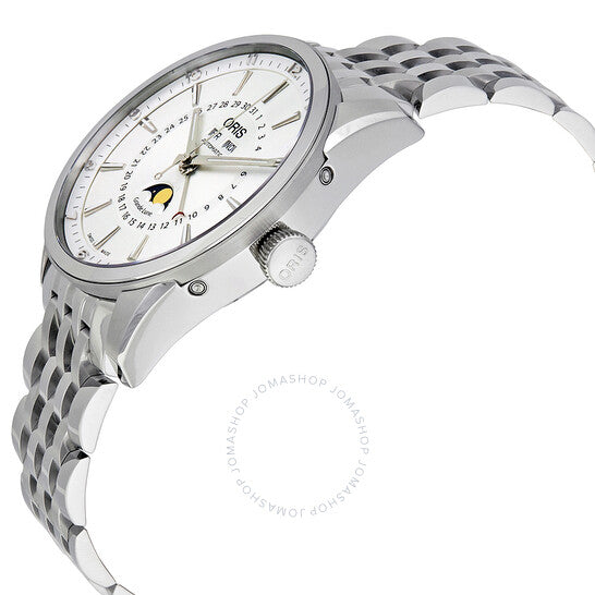 علبة من الفولاذ المقاوم للصدأ مع سوار من الفولاذ المقاوم للصدأ. إطار ثابت من الفولاذ المقاوم للصدأ. ميناء فضي اللون بعقارب فضية اللون وعلامات ساعات بأرقام عربية. مقياس تاريخ حول حلقة داخلية (تاريخ المؤشر). علامات دقائق حول الحافة الخارجية. نوع الميناء: تناظري. عقارب وعلامات مضيئة. عرض أطوار القمر. حركة أوريس أوتوماتيكية عيار 915 مع احتياطي طاقة لمدة 38 ساعة. زجاج من الياقوت المقاوم للخدش. تاج قابل للسحب/الدفع. غطاء خلفي شفاف. حجم العلبة: 42 مم. سمكها: 13 مم. شكلها دائري. عرض السوار: 21 مم. مشبك قابل للطي بزر ضغط. مقاومة للماء حتى عمق 100 متر / 330 قدمًا. الوظائف: التاريخ، اليوم، الساعة، الدقيقة، الثانية، أطوار القمر. طراز ساعة رسمية. علامة الساعة: صناعة سويسرية. ساعة أوريس أرتيكس كومبليكشن أوتوماتيكية للرجال 01 915 7643 4031-07 8 21 80.