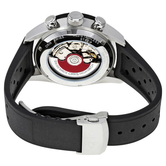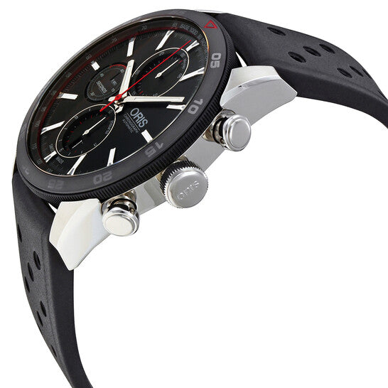 علبة من الفولاذ المقاوم للصدأ مع سوار مطاطي أسود. إطار سيراميك أسود دوار أحادي الاتجاه. ميناء أسود بعقارب وعلامات ساعات فضية مضيئة. علامات دقائق. علامات تاكيميتر حول الحافة الخارجية. نوع الميناء: تناظري. عقارب وعلامات مضيئة. عرض التاريخ عند موضع الساعة السادسة. كرونوغراف - ثلاثة أقراص فرعية تعرض: 60 ثانية، 30 دقيقة، و12 ساعة. عيار أوريس 774، حركة أوتوماتيكية SW 500 أساسية مع احتياطي طاقة لمدة 48 ساعة. زجاج ياقوت مقاوم للخدش. تاج لولبي. غطاء خلفي شفاف. حجم العلبة: 44 مم. سمكها: 14.90 مم. شكلها دائري. عرض السوار: 22 مم. مشبك قابل للطي. مقاومة للماء حتى عمق 100 متر / 330 قدمًا. الوظائف: كرونوغراف، تاكيميتر، تاريخ، ساعة، دقيقة، ثانية. طراز ساعة رياضية. علامة الساعة: صناعة سويسرية. ساعة أوريس أرتيكس جي تي أوتوماتيكية كرونوغراف للرجال 01 774 7661 4424-07 4 22 25FC.