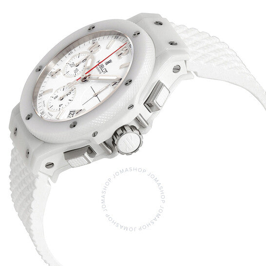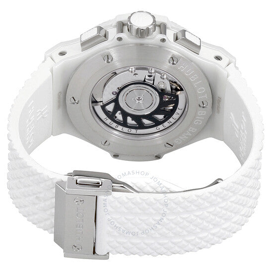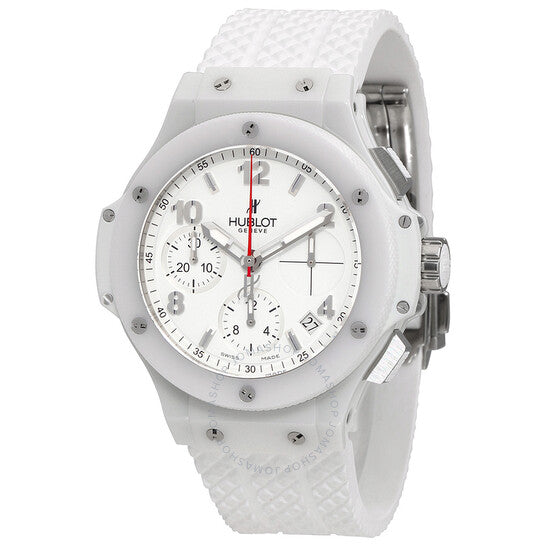 علبة سيراميك مع سوار مطاطي أبيض. إطار ثابت. ميناء أبيض بعقارب هيكلية وعلامات ساعات عربية ومؤشرية متناوبة. علامات دقائق حول الحافة الخارجية. نوع الميناء: تناظري. عرض التاريخ بين موضعي الساعة 4 و5. كرونوغراف - ثلاثة أقراص فرعية تعرض: 60 ثانية، 30 دقيقة، و12 ساعة. آلية حركة أوتوماتيكية. زجاج ياقوت مقاوم للخدش. قطر العلبة: 41 مم. شكل العلبة دائري. مشبك قابل للطي. الوظائف: كرونوغراف، تاريخ، ساعة، دقيقة، ثانية. طراز ساعة فاخرة. ساعة هوبلو أسبن للرجال أوتوماتيكية بمينا أبيض مطاطية 342.CH.230.RW.