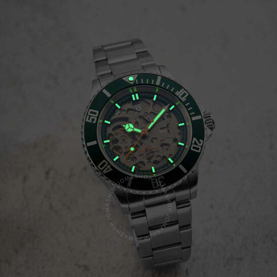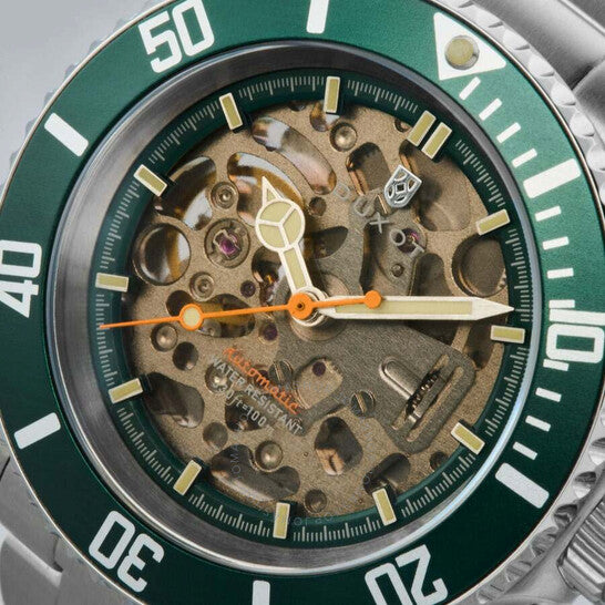 تُعيد ساعة Atlantica Skeleton Automatic تعريف ساعة الغوص الكلاسيكية بلمسة عصرية. تتميز بحركة NH70 الأوتوماتيكية الهيكلية، ويعرض الميناء الشفاف بفخر آلياتها الداخلية المعقدة. بفضل مقاومتها للماء حتى عمق 100 متر، لا تُعد هذه الساعة مجرد إكسسوار أنيق فحسب، بل أيضًا رفيقًا موثوقًا به في جميع مغامراتك. هيكل وسوار من الفولاذ المقاوم للصدأ فضي اللون. إطار دوار أحادي الاتجاه من الفولاذ المقاوم للصدأ أخضر اللون. ميناء أخضر مع عقارب وعلامات ساعات فضية اللون. علامات دقائق حول الحافة الخارجية. نوع الميناء: تناظري. عقارب وعلامات مضيئة. حركة أوتوماتيكية SII Caliber NH70A، تحتوي على 24 جوهرة، وتنبض بسرعة 21600 ذبذبة في الساعة، ولديها احتياطي طاقة يبلغ حوالي 41 ساعة. كريستال ياقوت مقاوم للخدش. تاج سحب/دفع. غطاء خلفي شفاف. شكل دائري، حجم الهيكل: 40 مم، سمك الهيكل: 13 مم. عرض السوار: 20 مم، طول السوار: 8 بوصات. مشبك قابل للطي مع تحرير أمان. مقاومة للماء حتى عمق ١٠٠ متر / ٣٣٠ قدمًا. الوظائف: الساعات، الدقائق، الثواني. سلسلة أتلانتيكا. تصميم كاجوال. علامة الساعة: Japan Movt. ساعة دوكسوت أتلانتيكا أوتوماتيكية للرجال بمينا أخضر DX-2067-33.