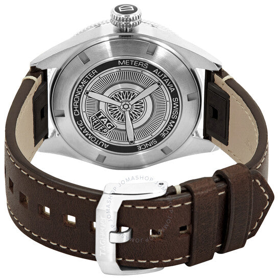 علبة من الفولاذ المقاوم للصدأ مع سوار من جلد العجل البني. إطار دوار ثنائي الاتجاه من الفولاذ المقاوم للصدأ مع حلقة سيراميك زرقاء داكنة. ميناء أزرق داكن بعقارب فضية مضيئة وعلامات ساعات بأرقام عربية. علامات دقائق حول الحافة الخارجية. نوع الميناء: تناظري. عقارب وعلامات مضيئة. عرض التاريخ عند موضع الساعة السادسة. حركة أوتوماتيكية من تاغ هوير كاليبر 5، تحتوي على 26 جوهرة، تنبض بمعدل 28800 ذبذبة في الساعة، ولديها احتياطي طاقة يدوم حوالي 38 ساعة. زجاج ياقوت مقاوم للخدش. تاج قابل للسحب/الدفع. غطاء خلفي صلب. شكل دائري. حجم العلبة: 42 مم. عرض السوار: 20 مم. مشبك تانغ. مقاومة للماء حتى عمق 100 متر / 330 قدمًا. الوظائف: التاريخ، الساعة، الدقائق، الثواني. سلسلة أوتافيا. تصميم ساعة فاخرة. ملصق الساعة: صناعة سويسرية. ساعة تاغ هوير أوتافيا أوتوماتيكية للرجال بمينا أزرق داكن WBE5116.FC8266.