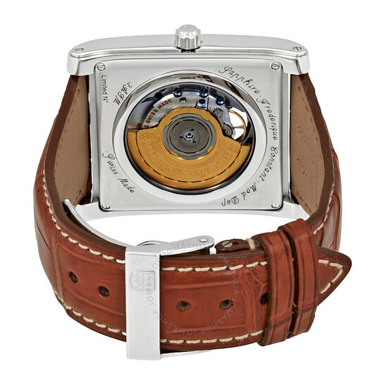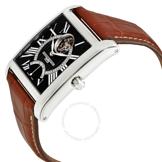 علبة من الفولاذ المقاوم للصدأ مع سوار جلدي بني. إطار ثابت. ميناء أسود بنافذة هيكلية، مع عقارب فضية مضيئة وعلامات ساعات رومانية. علامات دقائق حول حلقة داخلية. نوع الميناء: تناظري. عقارب مضيئة. حركة أوتوماتيكية من عيار فريدريك كونستانت FC-680 مع احتياطي طاقة لمدة 42 ساعة. زجاج ياقوت مقاوم للخدش. تاج قابل للسحب/الدفع. غطاء خلفي شفاف. مقاس العلبة: 46 مم × 38.5 مم. سُمك العلبة: 11 مم. شكل العلبة مستطيل. مشبك قابل للطي. مقاومة للماء حتى عمق 30 مترًا / 100 قدم. الوظائف: الساعات، الدقائق، الثواني. تصميم ساعة فاخرة. علامة الساعة: صناعة سويسرية. ساعة فريدريك كونستانت أوتوماتيكية للرجال بمينا أسود FC-680BS4C26.