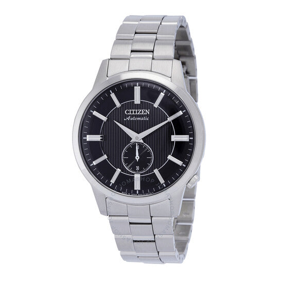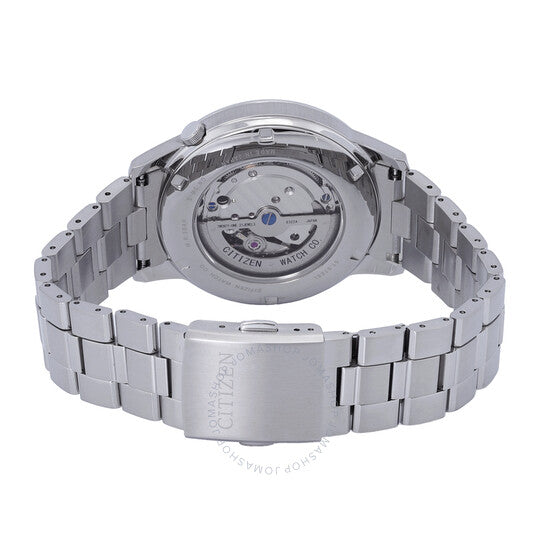 علبة وسوار من الفولاذ المقاوم للصدأ فضي اللون. إطار ثابت من الفولاذ المقاوم للصدأ فضي اللون. ميناء أسود بعقارب فضية اللون وعلامات ساعات. نوع الميناء: تناظري. حركة أوتوماتيكية من سيتيزن كاليبر 8322 مع احتياطي طاقة لمدة 60 ساعة. زجاج معدني مقاوم للخدش. تاج قابل للسحب/الدفع. غطاء خلفي شفاف. شكل العلبة دائري، مقاسها: 41 مم، سمكها: 12.9 مم. مقاومة للماء حتى عمق 50 مترًا / 165 قدمًا. الوظائف: الساعات، الدقائق، الثواني. معلومات إضافية: بدون وظيفة استقبال الراديو. طراز الساعة رياضي. علامة الساعة: Japan Movt. ساعة سيتيزن أوتوماتيكية للرجال بمينا أسود NK5000-98E.