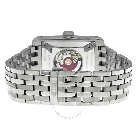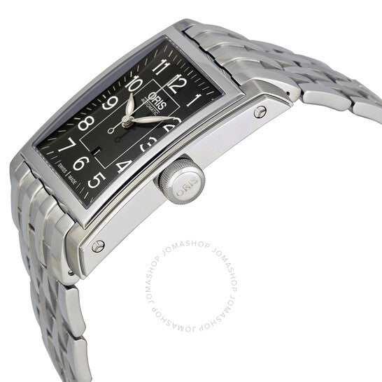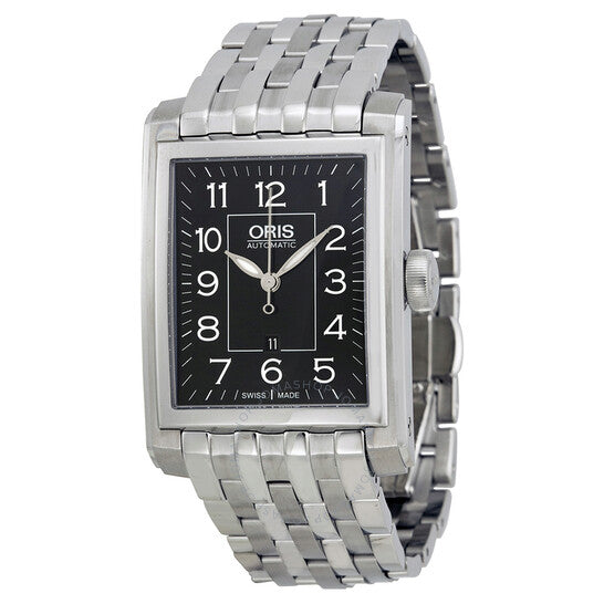 علبة من الفولاذ المقاوم للصدأ مع سوار من الفولاذ المقاوم للصدأ. إطار ثابت من الفولاذ المقاوم للصدأ. ميناء أسود بعقارب فضية مضيئة وعلامات ساعات بأرقام عربية. علامات دقائق حول الحافة الخارجية. نوع الميناء: تناظري. عقارب مضيئة. عرض التاريخ عند موضع الساعة السادسة. عيار أوريس 561، حركة أوتوماتيكية أساسية ETA 2671 مع احتياطي طاقة لمدة 38 ساعة. زجاج ياقوت مقاوم للخدش. تاج قابل للسحب/الدفع. ظهر هيكلي. شكل مستطيل. أبعاد العلبة: 44 مم × 30 مم. سمك العلبة: 10.7 مم. عرض السوار: 22 مم. مشبك قابل للطي بزر ضغط. مقاومة للماء حتى عمق 50 مترًا / 165 قدمًا. الوظائف: التاريخ، الساعة، الدقيقة، الثانية. طراز ساعة رسمية. ملصق الساعة: صناعة سويسرية. ساعة أوريس أوتوماتيكية بمينا أسود من الفولاذ المقاوم للصدأ 561-7657-4034MB.