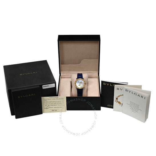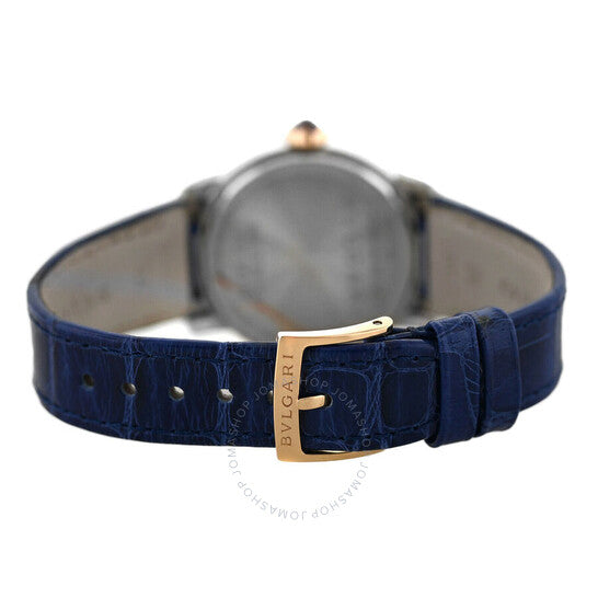 علبة من الفولاذ المقاوم للصدأ فضية اللون مع سوار جلدي أزرق. إطار ثابت من الذهب الوردي عيار 18 قيراطًا. ميناء أزرق مع عقارب فضية اللون. نوع الميناء: تناظري. حركة أوتوماتيكية. زجاج من الياقوت المقاوم للخدش. تاج قابل للسحب والدفع. غطاء خلفي صلب. شكل دائري، مقاس العلبة: 33 مم. طول السوار: 6.75 بوصة. مشبك بإبزيم. مقاومة للماء حتى عمق 30 مترًا / 100 قدم. الوظائف: الساعات، الدقائق. سلسلة بولغاري. طراز ساعة فاخرة. علامة الساعة: صناعة سويسرية. إصدارات المنتج: BBLP33SG، BBL33FDSPGL. ساعة بولغاري بولغاري أوتوماتيكية نسائية بمينا أزرق 101896 - زرقاء.