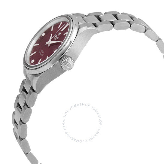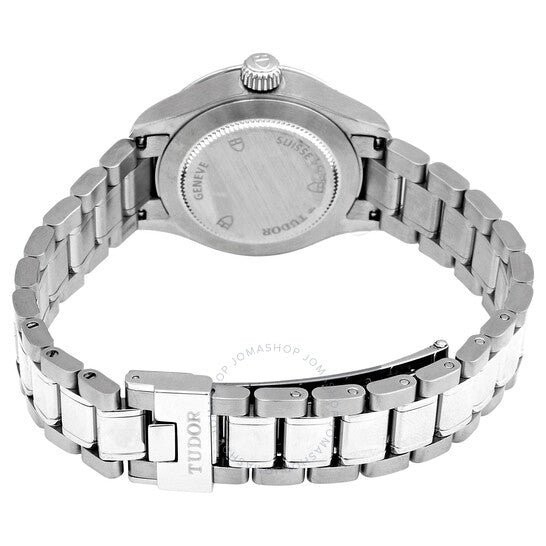 علبة من الفولاذ المقاوم للصدأ مع سوار من الفولاذ المقاوم للصدأ. إطار ثابت من الفولاذ المقاوم للصدأ. ميناء عنابي مع عقارب فضية مضيئة وعلامات ساعات. مرصعة بالألماس عند الساعة 3 و6 و9. علامات دقائق حول الحافة الخارجية. نوع الميناء: تناظري. عرض التاريخ عند الساعة 3. حركة أوتوماتيكية من عيار تيودور T201، مبنية على ETA 2671، تحتوي على 25 جوهرة، تنبض بمعدل 28800 ذبذبة في الساعة، ولديها احتياطي طاقة لمدة 38 ساعة تقريبًا. زجاج من الياقوت المقاوم للخدش. تاج لولبي. غطاء خلفي صلب. شكل دائري. حجم الهيكل: 28 مم. مشبك قابل للطي مع مفتاح أمان. مقاومة للماء حتى عمق 100 متر / 330 قدمًا. الوظائف: التاريخ، الساعة، الدقيقة، الثانية. تصميم ساعة فاخرة. علامة الساعة: صناعة سويسرية. ساعة تيودور أوتوماتيكية نسائية بمينا عنابي مرصعة بالألماس M12100-0015.