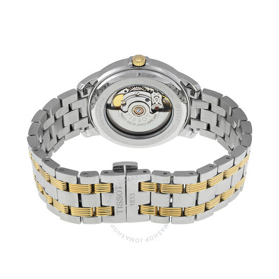 علبة من الفولاذ المقاوم للصدأ مع سوار من الفولاذ المقاوم للصدأ ثنائي اللون (فضي وذهبي مطلي بتقنية PVD). إطار ثابت فضي وذهبي مطلي بتقنية PVD. ميناء أسود مع عقارب وعلامات ساعات ذهبية مضيئة. علامات دقائق حول الحافة الخارجية. نوع الميناء: تناظري. عقارب وعلامات مضيئة. عرض يوم الأسبوع والتاريخ عند موضع الساعة 3. حركة أوتوماتيكية من عيار ETA 2836-2 مع احتياطي طاقة لمدة 42 ساعة. زجاج من الياقوت المقاوم للخدش. تاج قابل للسحب/الدفع. غطاء خلفي هيكلي. حجم العلبة: 39 مم. سمكها: 9.5 مم. شكلها دائري. عرض السوار: 19 مم. مشبك فراشة. مقاومة للماء حتى عمق 50 مترًا / 165 قدمًا. الوظائف: التاريخ، اليوم، الساعة، الدقيقة، الثانية. تصميم كاجوال. علامة الساعة: صناعة سويسرية. رقم الصنف: T0654302205100. ساعة تيسوت أوتوماتيك III أوتوماتيكية للرجال T065.430.22.051.00.