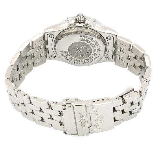 علبة وسوار من الفولاذ المقاوم للصدأ فضي اللون. إطار دوار أحادي الاتجاه. ميناء من عرق اللؤلؤ مع عقارب فضية اللون وعلامات ساعات. نوع الميناء: تناظري. عرض التاريخ عند موضع الساعة 3. حركة بريتلينغ أوتوماتيكية كاليبر 71. زجاج ياقوتي مقاوم للخدش. علبة دائرية الشكل، مقاسها 30 مم. مقاومة للماء حتى عمق 100 متر / 330 قدمًا. الوظائف: التاريخ، الساعة، الدقائق، الثانية. تصميم ساعة فاخر. علامة الساعة: صناعة سويسرية. ساعة بريتلينغ أوتوماتيكية نسائية A7134012/C692.360A.