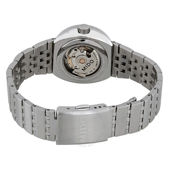 علبة من الفولاذ المقاوم للصدأ فضية اللون مع سوار فضي اللون. إطار ثابت من الفولاذ المقاوم للصدأ فضي اللون. ميناء من عرق اللؤلؤ مع عقارب فضية اللون وعلامات ساعات. نوع الميناء: تناظري. عرض يوم الأسبوع والتاريخ عند موضع الساعة الرابعة. حركة أوتوماتيكية. زجاج ياقوتي مقاوم للخدش. غطاء خلفي شفاف. شكل دائري. حجم العلبة: 30 مم. مقاومة للماء حتى عمق 50 مترًا / 165 قدمًا. الوظائف: التاريخ، اليوم، الساعة، الدقيقة، الثانية. تصميم كاجوال. علامة الساعة: صناعة سويسرية. ساعة ميدو أوتوماتيكية نسائية من عرق اللؤلؤ M733041912.