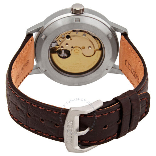 علبة من التيتانيوم الرمادي (فائق الجودة) مع سوار جلدي بني. إطار ثابت من التيتانيوم الرمادي (فائق الجودة). ميناء فضي اللون بعقارب فضية اللون وعلامات ساعات. علامات دقائق حول الحافة الخارجية. نوع الميناء: تناظري. عرض التاريخ عند موضع الساعة. حركة أوتوماتيكية من سيتيزن كاليبر 8210، تحتوي على 21 جوهرة، تنبض بمعدل 21600 ذبذبة في الساعة، ولديها احتياطي طاقة يصل إلى 45 ساعة تقريبًا. زجاج ياقوت مقاوم للخدش. تاج قابل للسحب/الدفع. غطاء خلفي شفاف. شكل دائري. حجم العلبة: 40 مم. سمكها: 12 مم. عرض السوار: 20 مم. مشبك تانغ. مقاومة للماء حتى عمق 50 مترًا / 165 قدمًا. الوظائف: التاريخ، الساعة، الدقيقة، الثانية. تصميم كاجوال. ساعة سيتيزن أوتوماتيكية للرجال بمينا فضي وجلد أسود، NJ2180-11A.