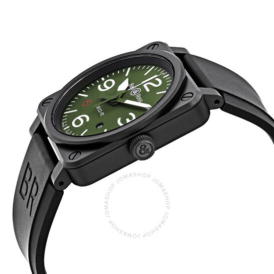علبة من السيراميك الأسود غير اللامع مع سوار مطاطي أسود. إطار ثابت من السيراميك الأسود غير اللامع. ميناء أخضر كاكي مع عقارب بيضاء مضيئة ومؤشرات ساعات. أرقام عربية تُشير إلى الساعات 3 و6 و9 و12. مؤشرات دقائق حول الحافة الخارجية. نوع الميناء: تناظري. عقارب ومؤشرات مضيئة - سوبرلومينوفا. عرض التاريخ بين الساعة 4 و5. حركة أوتوماتيكية من بيل آند روس، عيار BR-CAL.302، مبنية على سيليتا SW300-1، تحتوي على 25 جوهرة، تنبض بتردد 28800 ذبذبة في الساعة، ولديها احتياطي طاقة يدوم حوالي 38 ساعة. زجاج ياقوت مقاوم للخدش. تاج قابل للسحب/الدفع. غطاء خلفي صلب. شكل دائري. حجم العلبة: 42 مم. سمك العلبة: 9.80 مم. عرض السوار: 24 مم. مشبك تانغ. مقاومة للماء حتى عمق 100 متر / 330 قدمًا. الوظائف: التاريخ، الساعة، الدقيقة، الثانية. معلومات إضافية: سوار قماشي أخضر كاكي متين متضمن. سلسلة أفيشن. تصميم فاخر. علامة الساعة: صناعة سويسرية. ساعة بيل آند روس أفيشن أوتوماتيكية للرجال بمينا أخضر كاكي BR0392-MIL-CE.