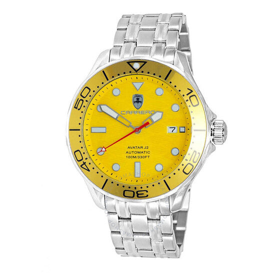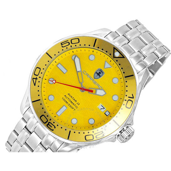 علبة وسوار من الفولاذ المقاوم للصدأ فضي اللون. إطار دوار أحادي الاتجاه من الفولاذ المقاوم للصدأ أصفر اللون. ميناء أصفر بعقارب فضية اللون وأرقام عربية وعلامات ساعات. علامات دقائق حول الحافة الخارجية. نوع الميناء: تناظري. عقارب وعلامات مضيئة. عرض التاريخ عند موضع الساعة 3. حركة أوتوماتيكية TMI Caliber NH35، تحتوي على 24 جوهرة، تنبض بمعدل 21600 ذبذبة في الساعة، ولديها احتياطي طاقة لمدة 41 ساعة تقريبًا. زجاج معدني مقاوم للخدش. تاج لولبي. غطاء خلفي صلب. شكل دائري، حجم العلبة: 44.5 مم، سمك العلبة: 15 مم. عرض السوار: 22 مم، طول السوار: 7.25 بوصة. قابلة للطي بمشبك مزدوج بزر ضغط. مقاومة للماء حتى عمق 100 متر / 330 قدمًا. الوظائف: التاريخ، الساعة، الدقيقة، الثانية. سلسلة أفاتار. تصميم ساعة كاجوال. ملصق الساعة: Japan Movt. ساعة تورينو كاريرو أفاتار أوتوماتيك للرجال JC1S6161YL.