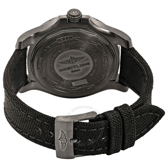 علبة من الفولاذ المقاوم للصدأ مع سوار قماشي أسود عسكري. إطار أسود. ميناء أسود بعقارب وعلامات ساعات سوداء. علامات دقائق حول الحافة الخارجية. نوع الميناء: تناظري. عقارب وعلامات مضيئة. عرض التاريخ عند موضع الساعة 3. حركة أوتوماتيكية. كريستال ياقوتي مقاوم للخدش. غطاء خلفي صلب. شكل دائري. حجم العلبة: 48 مم. مشبك تانغ. مقاومة للماء حتى عمق 300 متر / 1000 قدم. الوظائف: التاريخ، الساعة، الدقائق، الثواني. معلومات إضافية: إصدار محدود من 200 قطعة. تصميم ساعة فاخرة. علامة الساعة: صناعة سويسرية. ساعة بريتلينغ أفنجر بلاك بيرد أوتوماتيكية للرجال بمينا أسود V173102X/BE57/104W.