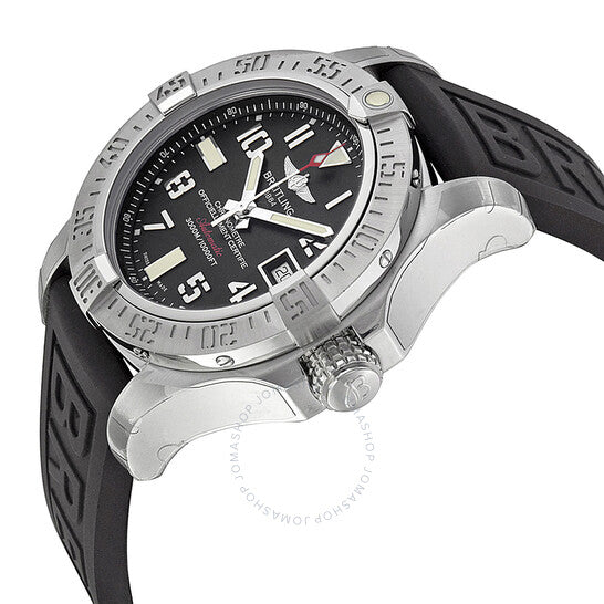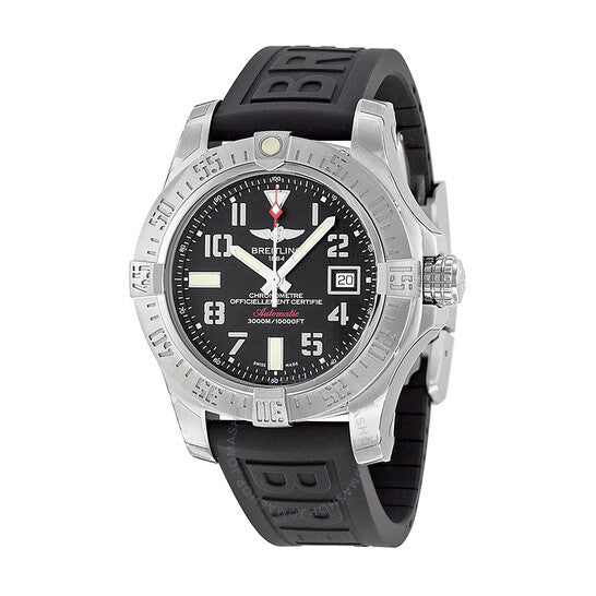 علبة من الفولاذ المقاوم للصدأ مع سوار مطاطي أسود (دايفر برو 3). إطار دوار أحادي الاتجاه من الفولاذ المقاوم للصدأ. ميناء أسود بعقارب مضيئة وعلامات ساعات بأرقام عربية. علامات دقائق. يظهر مقياس ١/١٠٠ ثانية حول الحافة الخارجية. نوع الميناء: تناظري. عقارب وعلامات مضيئة. عرض التاريخ عند موضع الساعة الثالثة. حركة أوتوماتيكية من بريتلينغ كاليبر ١٧ مع احتياطي طاقة ٤٠ ساعة. زجاج ياقوت مقاوم للخدش. تاج مُغلق ببرغي - حشوتان. غطاء خلفي صلب. حجم العلبة: ٤٥ مم. سُمكها: ١٨.٤ مم. شكلها دائري. عرض السوار: ٢٢ مم. مشبك قابل للطي. مقاومة للماء حتى عمق ٣٠٠٠ متر / ١٠٠٠٠ قدم. الوظائف: التاريخ، الساعة، الدقائق، الثواني. تصميم ساعة فاخرة. ملصق الساعة: صناعة سويسرية. ساعة بريتلينج أفينجر II سي وولف الأوتوماتيكية للرجال بمينا أسود ومطاط أسود A1733110-BC31BKPD3.
