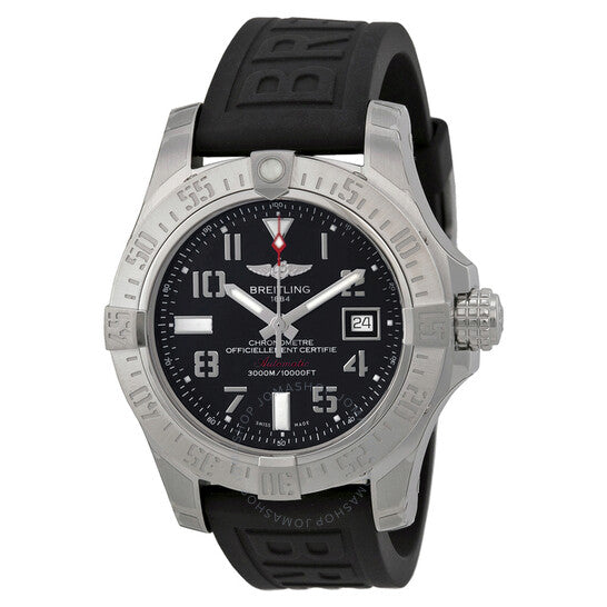 علبة من الفولاذ المقاوم للصدأ مع سوار مطاطي أسود (دايفر برو 3). إطار دوار أحادي الاتجاه من الفولاذ المقاوم للصدأ. ميناء أسود بعقارب فضية مضيئة وعلامات ساعات بأرقام عربية. علامات دقائق. علامات بمقياس 1/100 حول الحافة الخارجية. نوع الميناء: تناظري. عقارب وعلامات مضيئة. عرض التاريخ عند موضع الساعة 3. حركة أوتوماتيكية من بريتلينغ كاليبر 17 مع احتياطي طاقة لمدة 40 ساعة. زجاج من الياقوت المقاوم للخدش. قفل ببرغي - تاج بحشوتين. غطاء خلفي صلب. حجم العلبة: 45 مم. سمكها: 18.4 مم. شكلها دائري. عرض السوار: 22 مم / 20 مم. طول السوار: 8.5 بوصة. مشبك تانغ. مقاومة للماء حتى عمق 3000 متر / 10000 قدم. الوظائف: التاريخ، الساعة، الدقائق، الثواني. تصميم ساعة فاخرة. علامة الساعة: سويسرية الصنع. إصدارات المنتج: A1733110 BC31BKPT3، A1733110.BC31BKPT3، A1733110BC31BKPT3. ساعة بريتلينغ أفنجر II سي وولف الأوتوماتيكية للرجال A1733110-BC31BKPT3