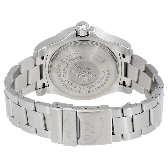 علبة من الفولاذ المقاوم للصدأ مع سوار من الفولاذ المقاوم للصدأ. إطار أحادي الاتجاه من الفولاذ المقاوم للصدأ. ميناء رمادي بعقارب مضيئة وعلامات ساعات عربية. علامات دقائق. يظهر مقياس ١/١٠٠ ثانية حول الحافة الخارجية. نوع الميناء: تناظري. عرض التاريخ عند موضع الساعة ٣. حركة أوتوماتيكية باحتياطي طاقة ٤٠ ساعة. زجاج من الياقوت المقاوم للخدش. تاج مُغلق ببرغي. قطر العلبة: ٤٥ مم. شكل العلبة دائري. مشبك قابل للطي. مقاومة للماء حتى عمق ٣٠٠٠ متر / ١٠٠٠٠ قدم. الوظائف: التاريخ، الساعة، الدقائق، الثواني. تصميم ساعة فاخرة. علامة الساعة: صناعة سويسرية. ساعة بريتلينغ أفنجر II سي وولف رمادية اللون، أوتوماتيكية للرجال من الفولاذ المقاوم للصدأ، A1733110-F563SS.