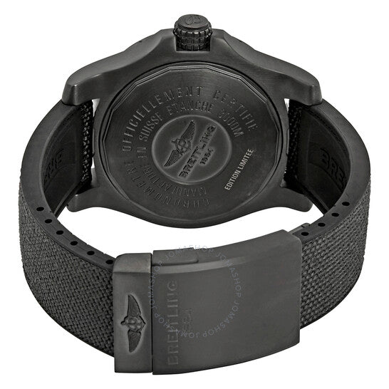 علبة سوداء من الفولاذ المقاوم للصدأ مع سوار قماشي أسود. إطار دوار أحادي الاتجاه من الفولاذ المقاوم للصدأ الأسود. ميناء أصفر كوبرا مع عقارب وعلامات ساعات سوداء مضيئة. علامات دقائق. علامات 1/100 ثانية حول الحافة الخارجية. نوع الميناء: تناظري. عقارب وعلامات مضيئة. عرض التاريخ عند موضع الساعة 6. حركة بريتلينغ كاليبر 17 أوتوماتيكية مع احتياطي طاقة لمدة 40 ساعة. زجاج من الياقوت المقاوم للخدش. تاج لولبي. غطاء خلفي صلب. شكل العلبة دائري، مقاس العلبة: 45 مم، سمكها: 18.4 مم. عرض السوار: 22 مم. مشبك تانغ. مقاومة للماء حتى عمق 300 متر / 1000 قدم. الوظائف: التاريخ، الساعة، الدقيقة، الثانية، الكرونومتر. معلومات إضافية: إصدار محدود. طراز ساعة غوص. علامة الساعة: صناعة سويسرية. ساعة بريتلينغ أفنجر II سي وولف أوتوماتيكية للرجال M17331E2-I530-101W.