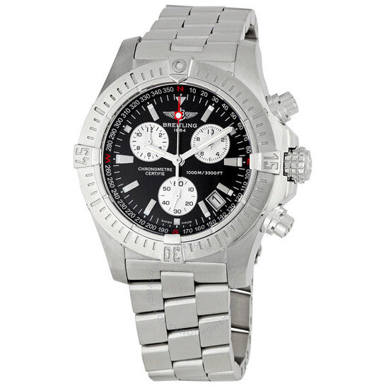 علبة من الفولاذ المقاوم للصدأ مع سوار من الفولاذ المقاوم للصدأ. إطار أحادي الاتجاه بسقاطة. ميناء أسود بعقارب مضيئة وعلامات ساعات. يظهر عرض التاريخ بين موضعي الساعة 4 و5. ثلاث ساعات: 12 ساعة، 60 دقيقة، وعُشر ثانية. حركة كوارتز فائقة. زجاج ياقوتي مقاوم للخدش. قطر العلبة: 45.40 مم. سُمكها: 18.00 مم. مشبك قابل للطي. مقاومة للماء حتى عمق 1000 متر/3300 قدم. الوظائف: الساعات، الدقائق، الثواني، التاريخ، الكرونوغراف، عدّاد تنازلي لليخوت. ساعة بريتلينغ أفنجر سي وولف كرونوغراف للرجال من الفولاذ المقاوم للصدأ، A7339010-BA04SS.