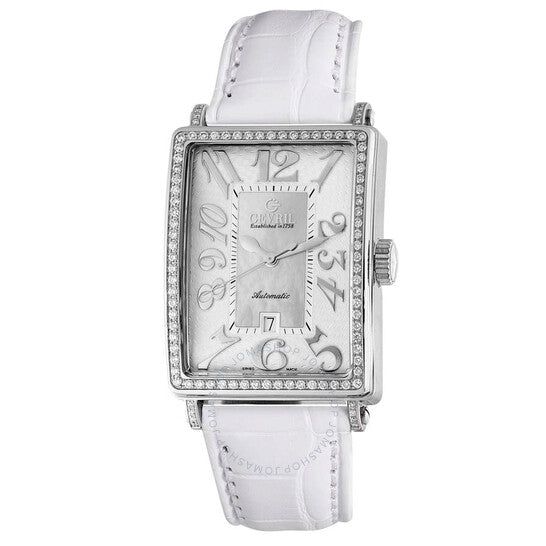 علبة من الفولاذ المقاوم للصدأ فضية اللون مع سوار من جلد التمساح الأبيض. إطار ثابت مرصع بالكريستال الفضي. ميناء ممسحة بعقارب فضية اللون وعلامات ساعات بأرقام عربية. مقياس دقائق حول الحافة الداخلية. نوع الميناء: تناظري. عرض التاريخ عند موضع الساعة السادسة. حركة أوتوماتيكية. كريستال ياقوت مقاوم للخدش ومضاد للانعكاس. تاج ضغط/سحب. غطاء خلفي صلب. شكل العلبة مستطيل، أبعادها: 44 × 34 مم، سمكها: 12.5 مم. عرض السوار: 23 مم، طوله: 7.5 بوصة. مشبك بإبزيم. مقاومة للماء حتى عمق 50 مترًا / 165 قدمًا. الوظائف: التاريخ، الساعة، الدقائق، الثواني. تصميم كاجوال. علامة الساعة: صناعة سويسرية. ساعة جيفريل أفينيو أوف أمريكاز غلامور أوتوماتيكية نسائية 6209NL.