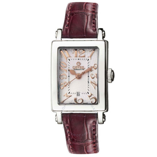 علبة فضية اللون من الفولاذ المقاوم للصدأ مع سوار بني من جلد العجل. إطار ثابت من الفولاذ المقاوم للصدأ فضي اللون. ميناء أبيض بعقارب ذهبية وردية وعلامات ساعات بأرقام عربية. نوع الميناء: تناظري. عرض التاريخ عند موضع الساعة السادسة. حركة كوارتز. زجاج ياقوتي مقاوم للخدش. غطاء خلفي صلب. شكل العلبة مستطيل، مقاسها: ٢٢ مم، سمكها: ٩ مم. عرض السوار: ١٣ مم. مشبك قابل للطي. مقاومة للماء حتى عمق ٥٠ مترًا / ١٦٥ قدمًا. الوظائف: التاريخ، الساعة، الدقائق، الثانية. طراز ساعة رسمية. علامة الساعة: صناعة سويسرية. ساعة جيفريل أفينيو أوف أمريكاز النسائية بمينا بيضاء ٨٠٤٥R.