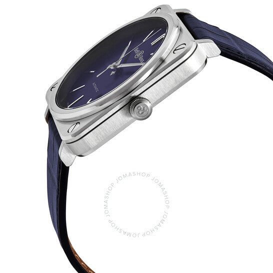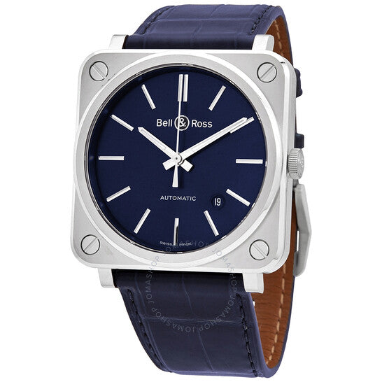 علبة من الفولاذ المقاوم للصدأ مع سوار أزرق من جلد التمساح. إطار ثابت من الفولاذ المقاوم للصدأ. ميناء أزرق مع عقارب ومؤشرات ساعات فضية مضيئة. نوع الميناء: تناظري. عقارب ومؤشرات مضيئة. عرض التاريخ بين موضعي الساعة الرابعة والخامسة. حركة أوتوماتيكية من بيل آند روس، عيار BR-CAL.302، مبنية على سيليتا SW300-1، تحتوي على 25 جوهرة، تنبض بتردد 28800 ذبذبة في الساعة، ولديها احتياطي طاقة يدوم حوالي 38 ساعة. زجاج ياقوتي مقاوم للخدش. تاج قابل للسحب/الدفع. غطاء خلفي شفاف. شكل العلبة مربع. حجم العلبة: 39 مم. سمكها: 9 مم. طول السوار: 7 بوصات. مشبك تانغ. مقاومة للماء حتى عمق 100 متر / 330 قدمًا. الوظائف: التاريخ، الساعة، الدقائق، الثواني. سلسلة الطيران. تصميم ساعة فاخرة. ملصق الساعة: صناعة سويسرية. ساعة بيل آند روس للطيران أوتوماتيكية للرجال بمينا أزرق BRS92-BLU-ST/SCR.