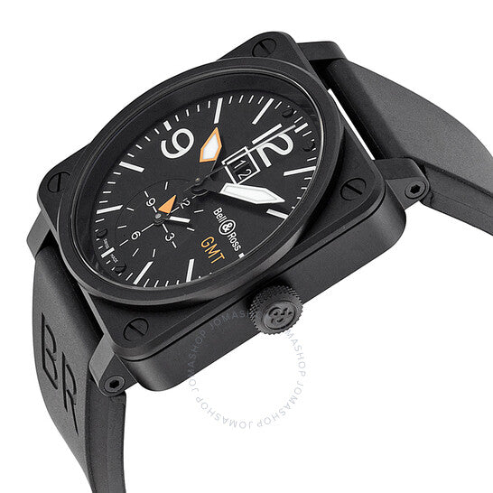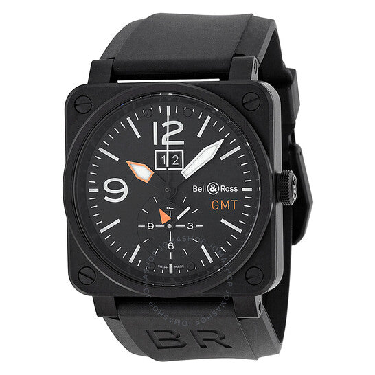 علبة من الفولاذ المقاوم للصدأ مطلية باللون الأسود بتقنية PVD مع حزام مطاطي أسود. إطار ثابت أسود بتقنية PVD. ميناء أسود مع عقارب مضيئة باللون الفضي والبرتقالي وعلامات الساعات. أرقام عربية تشير إلى موضعي الساعة 9 و12. علامات الدقائق حول الحافة الخارجية. نوع الميناء: تناظري. عقارب وعلامات مضيئة. عرض التاريخ أسفل موضع الساعة 12. ميناء فرعي للمنطقة الزمنية الثانية عند موضع الساعة 6. حركة أوتوماتيكية مع احتياطي طاقة لمدة 40 ساعة. كريستال ياقوتي مقاوم للخدش. تاج سحب/دفع. غطاء خلفي صلب. قطر العلبة: 42 مم. سمك العلبة: 13 مم. شكل العلبة مربع. عرض السوار: 32 مم. طول السوار: 7 بوصات. مشبك تانغ. مقاومة للماء حتى عمق 100 متر / 330 قدمًا. الوظائف: التاريخ، الساعة، الدقيقة، الثانية، المنطقة الزمنية الثانية. معلومات إضافية: يأتي مع حزام قماش برتقالي إضافي متين. طراز ساعة فاخر. ملصق الساعة: صنع سويسري. إصدارات المنتج: BR0351 GMT CA، BR0351.GMT.CA، BR0351GMTCA. ساعة بيل آند روس أفييشن للرجال، مينا سوداء، مطاط أسود، BR0351-GMT-CA.