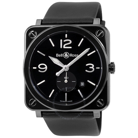علبة من السيراميك الأسود مع سوار مطاطي أسود. إطار ثابت من السيراميك الأسود. ميناء أسود بعقارب فضية مضيئة ومؤشرات ساعات. أرقام عربية تُشير إلى الساعات 3 و9 و12. نوع الميناء: تناظري. عقارب ومؤشرات مضيئة. عرض التاريخ بين الساعة 4 و5. ميناء فرعي للثواني فوق الساعة 6. آلية حركة كوارتز. كريستال ياقوتي مقاوم للخدش. غطاء خلفي صلب. قطر العلبة: 39 مم. شكل العلبة مربع. مشبك تانغ. مقاومة للماء حتى عمق 100 متر / 330 قدمًا. الوظائف: التاريخ، الساعة، الدقائق، الثانية. تصميم ساعة فاخرة. ساعة بيل آند روس أفييشن للرجال بمينا أسود ومطاط أسود، BRS-BL-CE-SAT.
