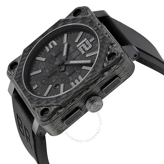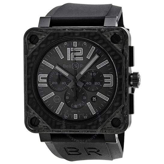 علبة من ألياف الكربون السوداء مع سوار مطاطي أسود. إطار ثابت. ميناء أسود بعقارب سوداء وعلامات ساعات لاصقة. أرقام عربية تُشير إلى مواقع الساعات 3 و9 و12. علامات دقائق حول الحافة الخارجية. نوع الميناء: تناظري. عقارب وعلامات مضيئة. عرض التاريخ بين موقعي الساعة 4 و5. كرونوغراف - ثلاثة أقراص فرعية تعرض: 60 ثانية، 30 دقيقة، و12 ساعة. حركة أوتوماتيكية. كريستال ياقوت مقاوم للخدش. غطاء خلفي صلب. قطر العلبة: 46 مم. شكل العلبة مربع. مشبك تانغ. مقاومة للماء حتى عمق 100 متر / 330 قدمًا. الوظائف: كرونوغراف، تاريخ، ساعة، دقيقة، ثانية. تصميم ساعة فاخرة. علامة الساعة: صناعة سويسرية. ساعة بيل آند روس كرونوغراف أفييشن أوتوماتيكية للرجال من ألياف الكربون BR0194-CA-FIBER-PH.