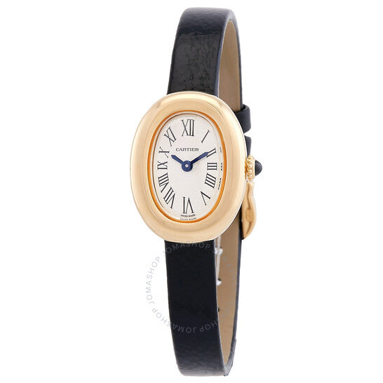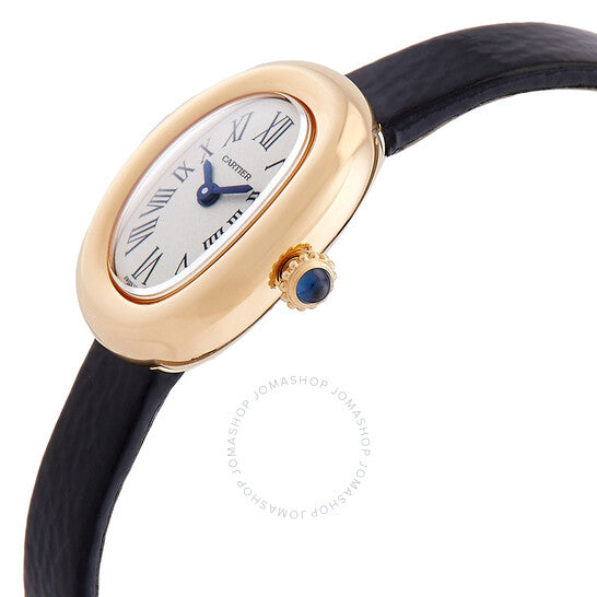 علبة من الذهب الأصفر عيار ١٨ قيراطًا مع سوار من جلد العجل الأسود. إطار ثابت من الذهب الأصفر عيار ١٨ قيراطًا. ميناء فضي بعقارب زرقاء وعلامات ساعات بأرقام رومانية. نوع الميناء: تناظري. حركة كوارتز. زجاج ياقوت مقاوم للخدش. غطاء خلفي صلب. شكل العلبة بيضاوي، أبعادها: ٢٤.٦ × ١٨.٧ مم. مشبك بإبزيم. مقاومة للماء حتى عمق ٣٠ مترًا / ١٠٠ قدم. الوظائف: الساعات، الدقائق. سلسلة بينوار. تصميم ساعة فاخرة. علامة الساعة: صناعة سويسرية. ساعة كارتييه بينوار ميني كوارتز نسائية بمينا فضي WGBA0017.