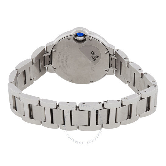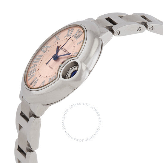 علبة وسوار من الفولاذ المقاوم للصدأ فضي اللون. إطار ثابت من الفولاذ المقاوم للصدأ فضي اللون. ميناء وردي مع عقارب على شكل سيف من الفولاذ المزرق، وعلامات ساعات بأرقام رومانية. علامات دقائق حول الحافة الخارجية. نوع الميناء: تناظري. حركة أوتوماتيكية. كريستال ياقوت مقاوم للخدش. تاج كابوشون. غطاء خلفي صلب. شكل دائري، مقاس العلبة: ٣٣ مم. مشبك قابل للطي مع مفتاح أمان. الوظائف: الساعات، الدقائق، الثواني. معلومات إضافية: العلبة الأصلية، دليل الاستخدام (ملحقات كاملة). سلسلة بالون بلو. طراز ساعة فاخرة. علامة الساعة: صناعة سويسرية. ساعة كارتييه بالون بلو أوتوماتيكية نسائية بمينا وردي WSBB0068.
