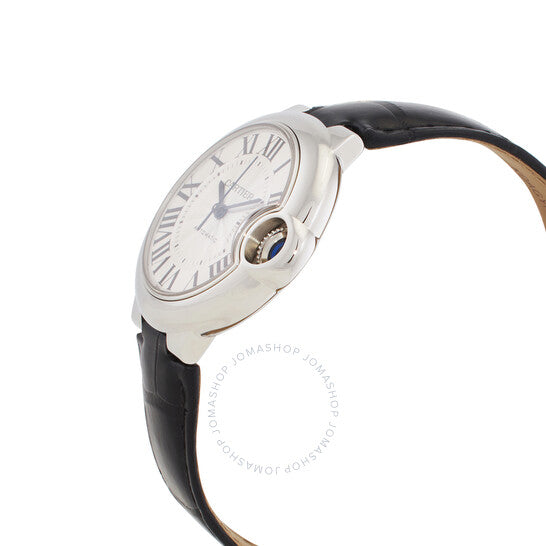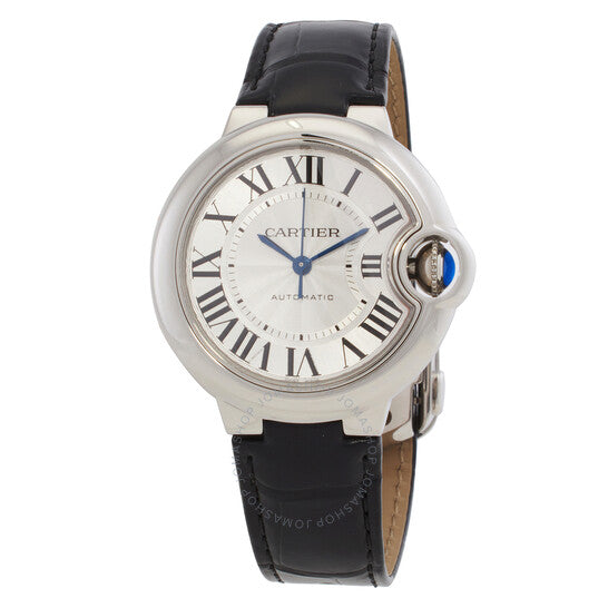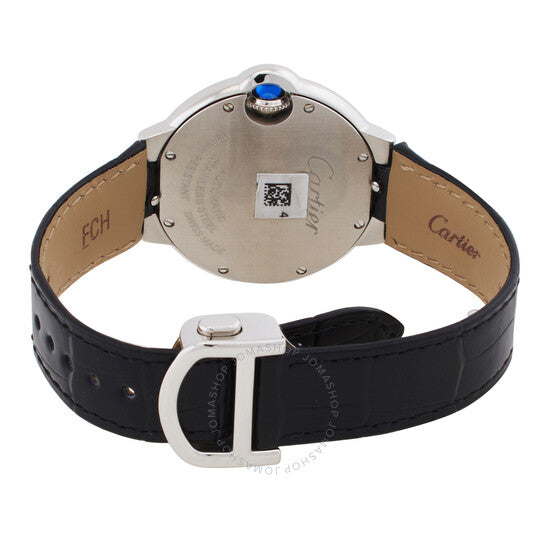 علبة من الفولاذ المقاوم للصدأ مع سوار جلدي أسود. إطار ثابت من الفولاذ المقاوم للصدأ. ميناء فضي بعقارب على شكل سيف من الفولاذ المزرق، وعلامات ساعات رومانية. علامات دقائق حول حلقة داخلية. نوع الميناء: تناظري. حركة كارتييه أوتوماتيكية عيار 076، مبنية على ETA 2670، تحتوي على 25 جوهرة، تنبض بمعدل 28800 ذبذبة في الساعة، ولديها احتياطي طاقة لمدة 38 ساعة تقريبًا. زجاج من الياقوت المقاوم للخدش. تاج لولبي. غطاء خلفي صلب. شكل دائري. حجم العلبة: 33 مم. سمكها: 9.96 مم. مشبك قابل للطي. مقاومة للماء حتى عمق 30 مترًا / 100 قدم. الوظائف: الساعات، الدقائق، الثواني. معلومات إضافية: العلبة الأصلية، دليل الاستخدام (ملحقات كاملة). سلسلة بالون بلو. تصميم ساعة فاخرة. علامة الساعة: صناعة سويسرية. ساعة كارتييه بالون بلو أوتوماتيكية نسائية بمينا فضي WSBB0030.