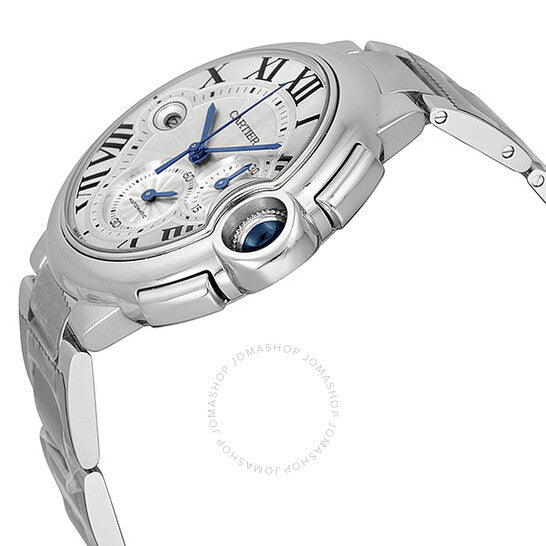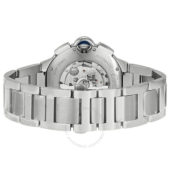 علبة من الفولاذ المقاوم للصدأ مع سوار من الفولاذ المقاوم للصدأ. إطار ثابت من الفولاذ المقاوم للصدأ. ميناء فضي بعقارب زرقاء على شكل سيف وعلامات ساعات رومانية. علامات دقائق حول حلقة داخلية. نوع الميناء: تناظري. عرض التاريخ عند موضع الساعة التاسعة. كرونوغراف - ميناءان فرعيان يعرضان: ٦٠ ثانية و٣٠ دقيقة. حركة أوتوماتيكية من كارتييه عيار ٨١٠١ إم سي مع احتياطي طاقة ٤٢ ساعة. زجاج من الياقوت المقاوم للخدش. مرصع بتاج أزرق من الكابوشون. ظهر هيكلي. حجم العلبة: ٤٤ مم. شكل دائري. مشبك قابل للطي بزر ضغط. مقاومة للماء حتى عمق ٣٠ مترًا / ١٠٠ قدم. الوظائف: الساعات، الدقائق، الثواني. تصميم ساعة فاخرة. علامة الساعة: صناعة سويسرية. ساعة كارتييه بالون بلو أوتوماتيكية للرجال بمينا فضي W6920076.