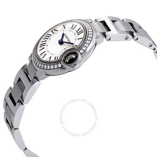 علبة من الفولاذ المقاوم للصدأ مع سوار من الفولاذ المقاوم للصدأ. إطار ثابت من الفولاذ المقاوم للصدأ مرصع بـ 42 ماسة. ميناء أوبالين بعقارب زرقاء وعلامات ساعات رومانية. علامات دقائق حول حلقة داخلية. نوع الميناء: تناظري. حركة كوارتز. زجاج ياقوت مقاوم للخدش. تاج قابل للسحب/الدفع. غطاء خلفي صلب. شكل دائري. حجم العلبة: 28 مم. سمكها: 9 مم. مشبك مخفي قابل للطي. مقاومة للماء حتى عمق 30 مترًا / 100 قدم. الوظائف: الساعات، الدقائق. معلومات إضافية: إطار مرصع بـ 42 ماسة بوزن إجمالي 0.52 قيراط. طراز ساعة فاخرة. علامة الساعة: صناعة سويسرية. ساعة كارتييه بالون بلو دايموند نسائية 28 مم W4BB0015.