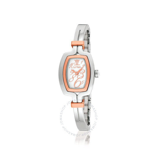 علبة وسوار من الفولاذ المقاوم للصدأ فضي اللون. إطار ثابت من الفولاذ المقاوم للصدأ بلون الذهب الوردي. ميناء أبيض بعقارب بلون الذهب الوردي وأرقام عربية وعلامات ساعات. نوع الميناء: تناظري. حركة كوارتز. هيكل مستطيل الشكل، مقاسه: ٢٥.٧ مم. مشبك قابل للطي مع قفل أمان. الوظائف: الساعات، الدقائق. سلسلة بانغل. طراز ساعة عصري. علامة الساعة: صناعة سويسرية. ساعة لو فيان بانغل كوارتز نسائية بمينا بيضاء DS4880-3-5.