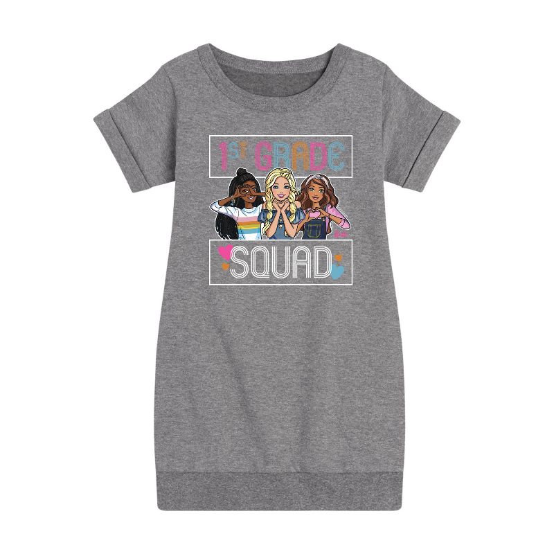 باربي - العودة إلى المدرسة - فرقة الصف الأول - فستان صوف للفتيات الصغيرات والشابات - انطلقي إلى عالم باربي الوردي الساحر مع ملابسنا المرسومة المرخصة رسميًا لعشاق الموضة! سواء كنتِ تحلمين بأن تصبحي مصممة أزياء، أو أميرة حورية بحر، أو مستكشفة عالمية، فإن ملابسنا تُضفي الحيوية على عالم باربي بألوانها الزاهية وطبعاتها المرحة. مصنوعة من مواد عالية الجودة مع عناية فائقة بالتفاصيل، تضمن كل قطعة الراحة والمتانة للعب طوال اليوم. عبّري عن ذوقكِ الفريد وخيالكِ مع ملابس باربي المرسومة الحصرية!