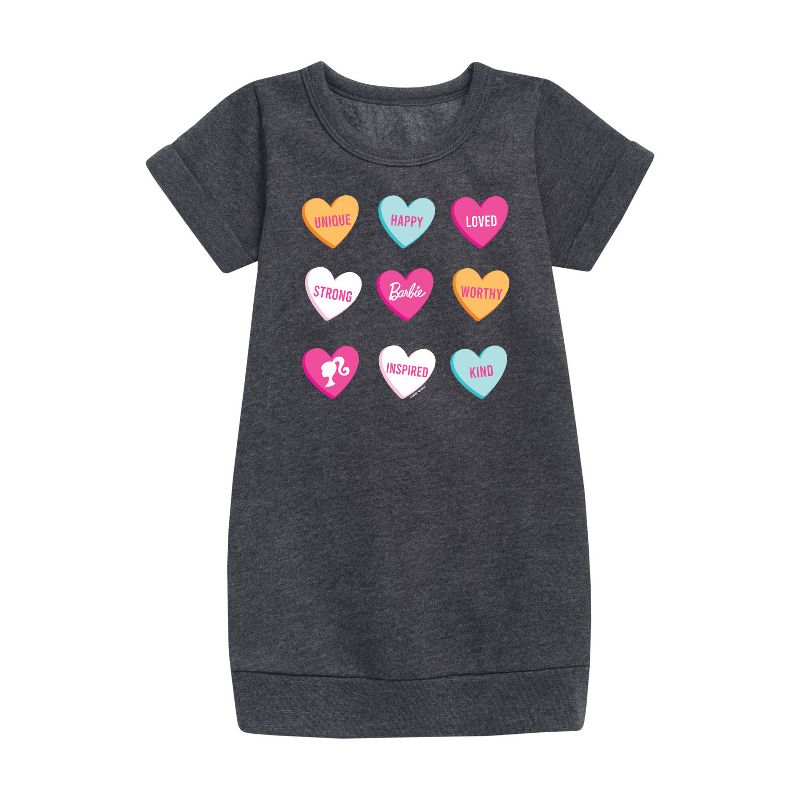 باربي - قلوب الحلوى - فستان صوف للفتيات الصغيرات والشابات - انطلقي إلى عالم باربي الوردي الساحر مع ملابسنا المرسومة المرخصة رسميًا لعشاق الموضة! سواء كنتِ تحلمين بأن تصبحي مصممة أزياء، أو أميرة حورية بحر، أو مستكشفة عالمية، فإن ملابسنا تُضفي الحيوية على عالم باربي بألوانها الزاهية وطبعاتها المرحة. مصنوعة من مواد عالية الجودة مع عناية فائقة بالتفاصيل، تضمن كل قطعة الراحة والمتانة للعب طوال اليوم. عبّري عن ذوقكِ الفريد وخيالكِ مع ملابس باربي المرسومة الحصرية!