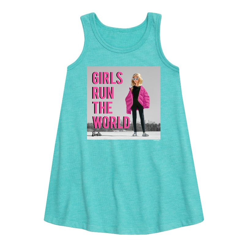 باربي - الفتيات يُهيمن على العالم - أسلوب رائع - فستان بقصة حرف A للفتيات الصغيرات والشابات - انطلقي إلى عالم باربي الوردي الساحر مع ملابسنا الرسومية المرخصة رسميًا لعاشقات الموضة! سواء كنتِ تحلمين بأن تصبحي مصممة أزياء، أو أميرة حورية بحر، أو مستكشفة عالمية، فإن ملابسنا تُضفي الحيوية على عالم باربي بألوانها الزاهية وطبعاتها المرحة. مصنوعة من مواد عالية الجودة مع عناية فائقة بالتفاصيل، تضمن كل قطعة الراحة والمتانة للعب طوال اليوم. عبّري عن ذوقكِ الفريد وخيالكِ مع ملابس باربي الرسومية الحصرية لدينا!