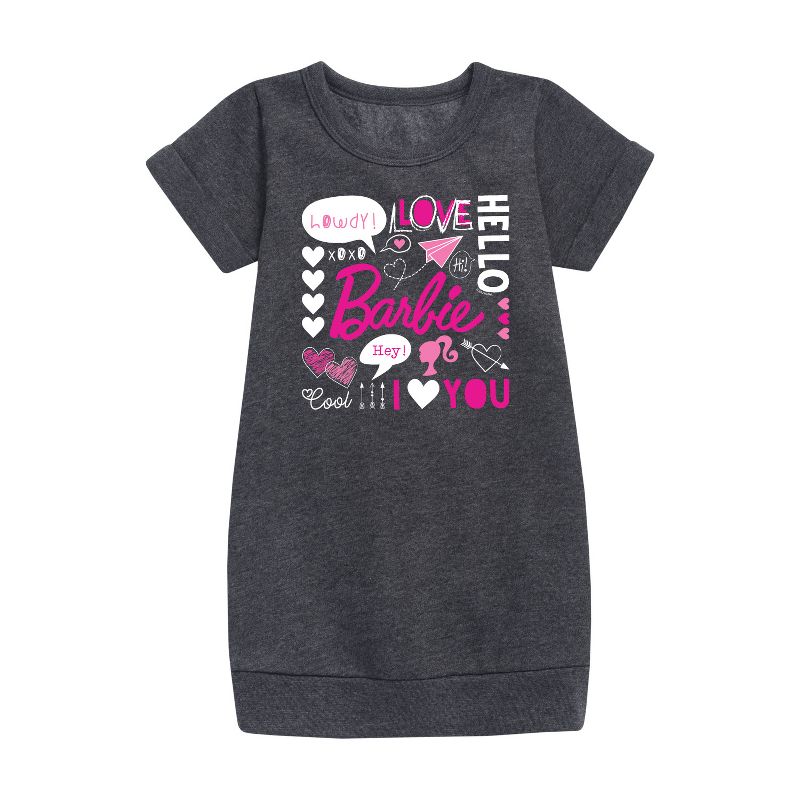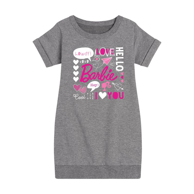 باربي - كولاج عيد الحب - فستان صوف للبنات الصغيرات والشابات - انطلقي إلى عالم باربي الوردي الساحر مع ملابسنا المرسومة المرخصة رسميًا لعشاق الموضة! سواء كنتِ تحلمين بأن تصبحي مصممة أزياء، أو أميرة حورية بحر، أو مستكشفة عالمية، فإن ملابسنا تُضفي الحيوية على عالم باربي بألوانها الزاهية وطبعاتها المرحة. مصنوعة من مواد عالية الجودة مع عناية فائقة بالتفاصيل، تضمن كل قطعة الراحة والمتانة للعب طوال اليوم. عبّري عن ذوقكِ الفريد وخيالكِ مع ملابس باربي المرسومة الحصرية!
