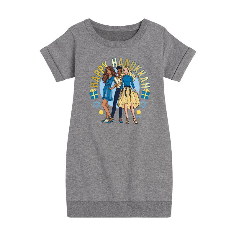 باربي - باربي وأصدقاؤها - فستان صوف سعيد للفتيات الصغيرات والشابات - انطلقي إلى عالم باربي الوردي الساحر مع ملابسنا المرخصة رسميًا والمُصممة خصيصًا لعشاق الموضة! سواء كنتِ تحلمين بأن تصبحي مصممة أزياء، أو أميرة حورية بحر، أو مستكشفة عالمية، فإن ملابسنا تُضفي حيوية على عالم باربي بألوانها الزاهية وطبعاتها المرحة. مصنوعة من مواد عالية الجودة مع عناية فائقة بالتفاصيل، تضمن كل قطعة الراحة والمتانة للعب طوال اليوم. عبّري عن ذوقكِ الفريد وخيالكِ مع ملابس باربي المرسومة الحصرية!