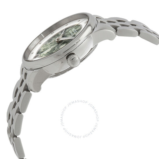 علبة وسوار من الفولاذ المقاوم للصدأ فضي اللون. إطار ثابت من الفولاذ المقاوم للصدأ فضي اللون. ميناء فضي وأخضر مع عقارب فضية اللون وعلامات ساعات. نوع الميناء: تناظري. عرض التاريخ عند موضع الساعة السادسة. حركة أوتوماتيكية باحتياطي طاقة يصل إلى 80 ساعة. زجاج من الياقوت المقاوم للخدش. تاج قابل للسحب/الدفع. غطاء خلفي شفاف. شكل العلبة دائري، مقاسها: 33 مم، سُمكها: 10 مم. مقاومة للماء حتى عمق 50 مترًا / 165 قدمًا. الوظائف: التاريخ، الساعة، الدقائق، الثواني. سلسلة بارونشيلي. اسم الساعة: صناعة سويسرية. ساعة ميدو بارونشيلي أوتوماتيكية نسائية M0352071148100.