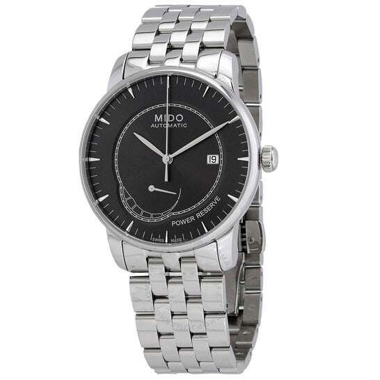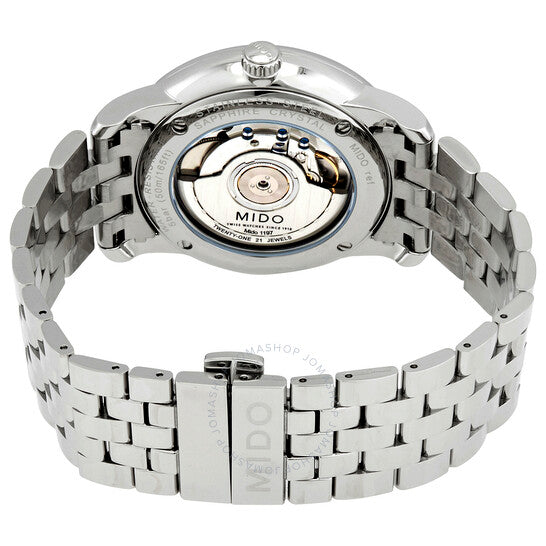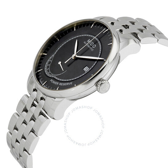 علبة من الفولاذ المقاوم للصدأ مع سوار من الفولاذ المقاوم للصدأ. إطار ثابت من الفولاذ المقاوم للصدأ. ميناء أسود بعقارب فضية اللون وعلامات ساعات. علامات دقائق حول الحافة الخارجية. نوع الميناء: تناظري. عرض التاريخ عند موضع الساعة 3. عرض احتياطي الطاقة. حركة أوتوماتيكية عيار ETA 2897، مبنية على ETA 2892، تحتوي على 21 جوهرة، تنبض بمعدل 28800 ذبذبة في الساعة، ولديها احتياطي طاقة لمدة 42 ساعة تقريبًا. كريستال ياقوت مقاوم للخدش. تاج قابل للسحب/الدفع. غطاء خلفي شفاف. شكل دائري. حجم العلبة: 42 مم. سمك العلبة: 9.75 مم. عرض السوار: 22 مم. مشبك قابل للطي بزر ضغط للتحرير. مقاومة للماء حتى عمق 50 مترًا / 165 قدمًا. الوظائف: التاريخ، الساعة، الدقيقة، الثانية، مؤشر احتياطي الطاقة. طراز ساعة فاخرة. ملصق الساعة: صناعة سويسرية. ساعة ميدو بارونشيلي أوتوماتيكية للرجال باحتياطي الطاقة M8605.4.13.1.