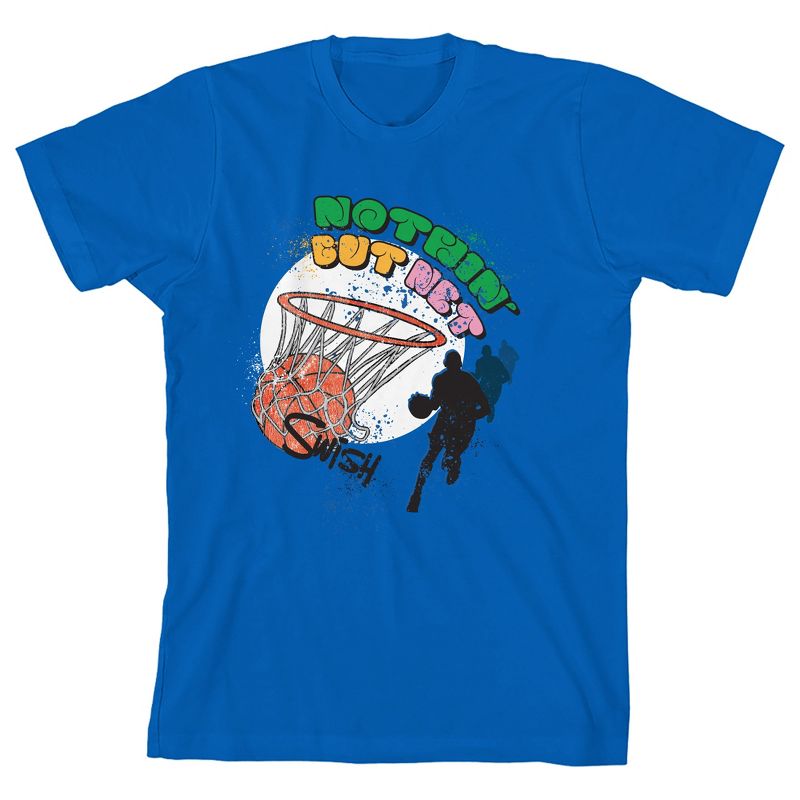 حقق فوزًا كبيرًا مع هذا التيشيرت الشبابي "لا شيء سوى الشبكة"! يُعد هذا التيشيرت خيارًا مثاليًا لعشاق كرة السلة الصغار، حيث يتميز بتصميم رائع للاعب كرة سلة محترف. يضفي اللون الأزرق الملكي لمسة حيوية على التيشيرت، مما يجعله مميزًا داخل الملعب وخارجه. بأكمام قصيرة وياقة دائرية مريحة، يوفر هذا التيشيرت المقاس المثالي للأطفال النشيطين الذين يرغبون في لعب كرة السلة أو تشجيع فريقهم المفضل. وهو مصنوع من قطن 100%، مما يوفر ملمسًا ناعمًا وجيد التهوية لراحة تدوم طوال اليوم أو لجلسات لعب حماسية. بعد مباراة حماسية، يمكنك غسله بسهولة في الغسالة.
