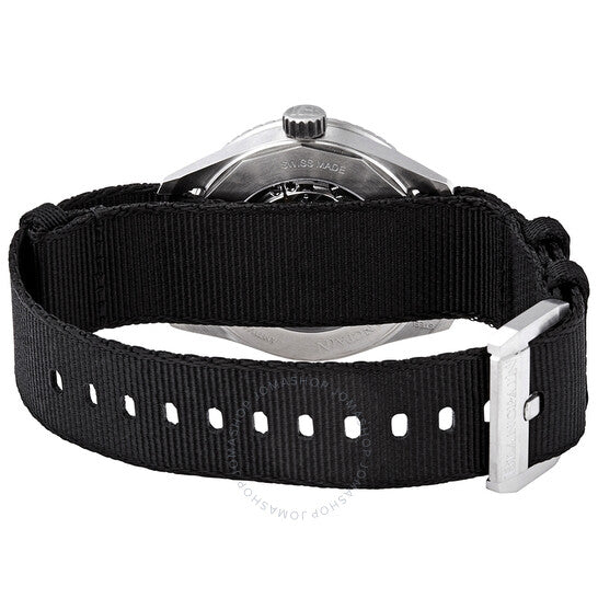 علبة من الفولاذ المقاوم للصدأ مع سوار من قماش الناتو الأسود. إطار دوار أحادي الاتجاه من الفولاذ المقاوم للصدأ بحافة عملة معدنية مع حلقة سيراميك سوداء (للعد التصاعدي للوقت المنقضي). ميناء رمادي بتصميم نيزكي مع عقارب مضيئة فضية اللون وعلامات ساعات منقطة. علامات دقائق حول الحافة الخارجية. نوع الميناء: تناظري. عقارب وعلامات مضيئة. عرض التاريخ بين موضعي الساعة 4 و5. حركة أوتوماتيكية من عيار بلانكبان 1150، تحتوي على 28 جوهرة، مكونة من 210 أجزاء، تنبض بمعدل 21600 ذبذبة في الساعة، ولديها احتياطي طاقة يصل إلى 100 ساعة تقريبًا. زجاج من الياقوت المقاوم للخدش. تاج لولبي. غطاء خلفي شفاف. شكل دائري. حجم العلبة: 38 مم. سمك العلبة: 11.00 مم. عرض السوار: 20.00 مم. مشبك تانغ. مقاومة للماء حتى عمق 300 متر / 1000 قدم. الوظائف: التاريخ، الساعة، الدقائق، الثواني. سلسلة باثي سكافي. ساعة فاخرة. علامة الساعة: صناعة سويسرية. ساعة بلانكبان باثيسكاف أوتوماتيكية للرجال 5100B 1110 NABA.