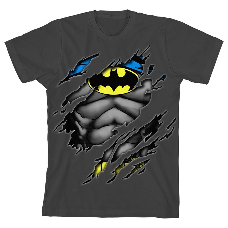 - تيشيرت برسومات جرافيكية: تُظهر صور التمزقات في القماش زيّ باتمان الخارق أسفل التيشيرت. سيحبّ محبو شخصية "البطل المقنع" ارتداء هذا التصميم الفريد احتفالاً ببطلهم المفضّل من دي سي.